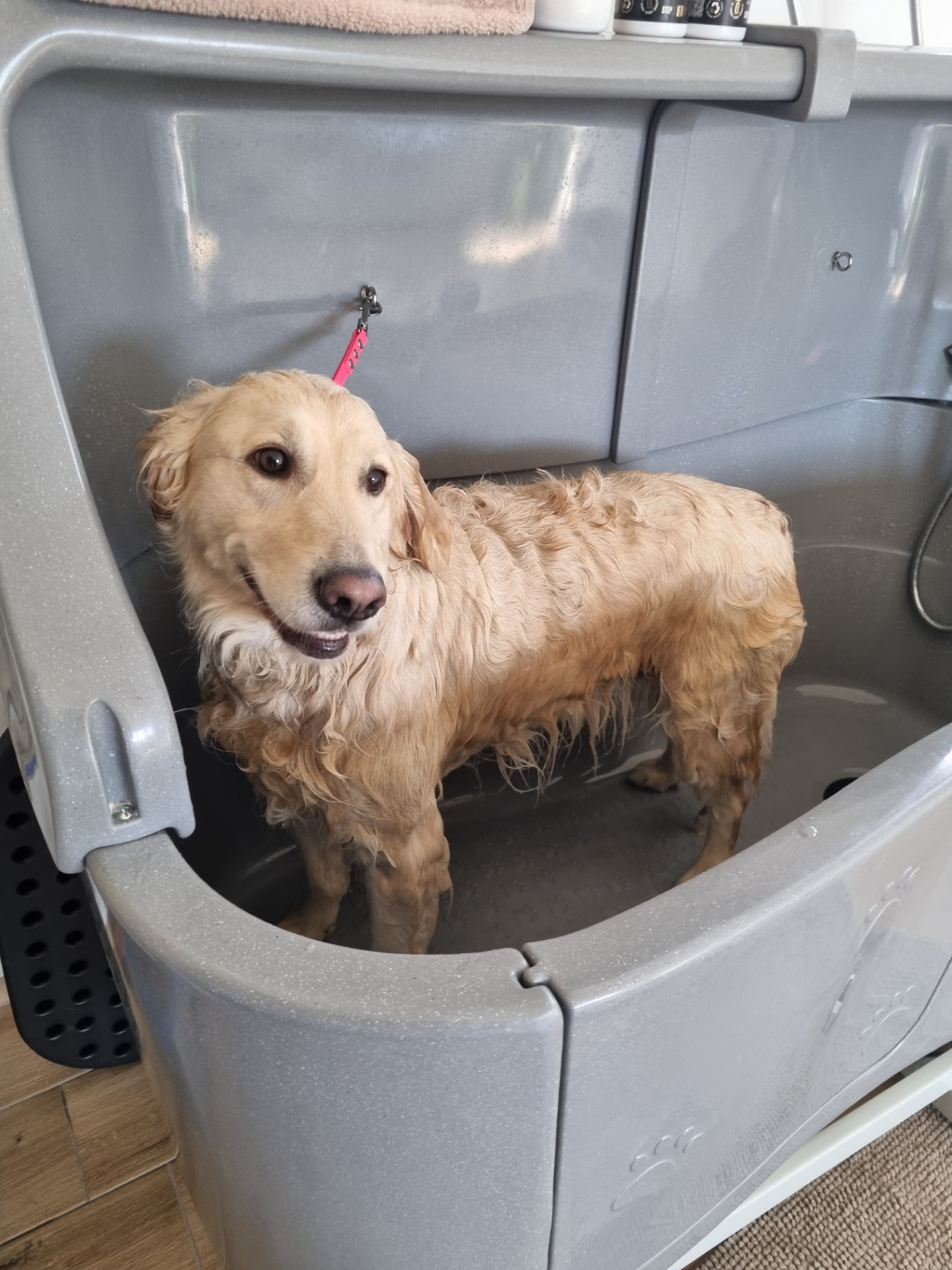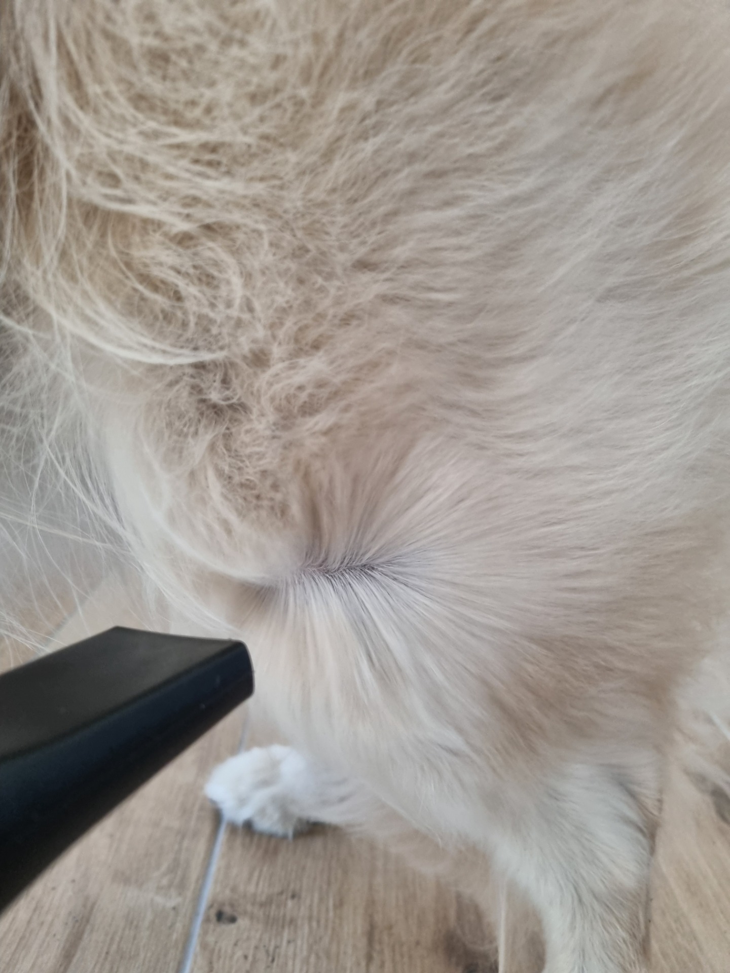 Používáme profesionální foukač Tauro s iontovou technologii, která napomáhá rychlejšímu odpařování vody, takže srst je vystavena menšímu působení tepla. To nám umožní udržet srst zdravou a zářivou. Vysoušeč srsti s integrovanou iontovou technologií snižuje elektrostatický efekt srsti a zkracuje proces sušení a bezpečně vyfouká uvolněnou podsadu.